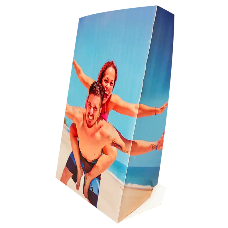 Display sublimable para la impresión de logotipos y mensajes de toda empresa o institución. Perfecto para presentaciones o exhibiciones. Blanco con acabado brillante.