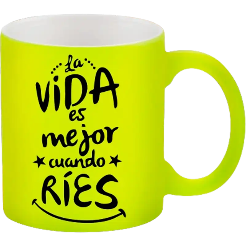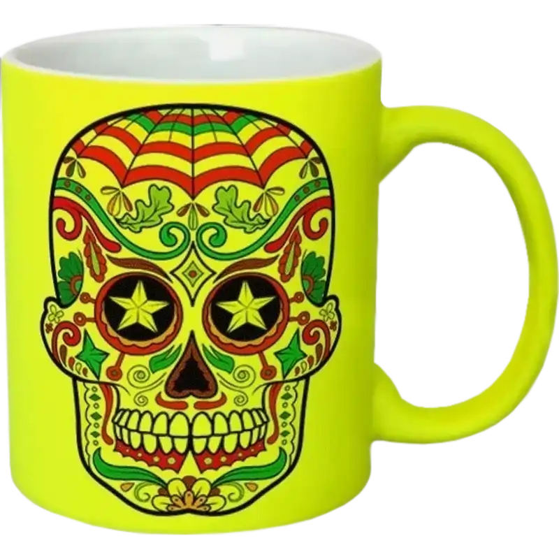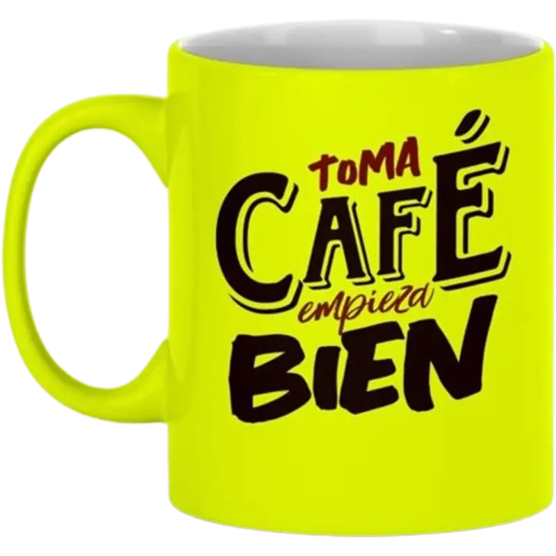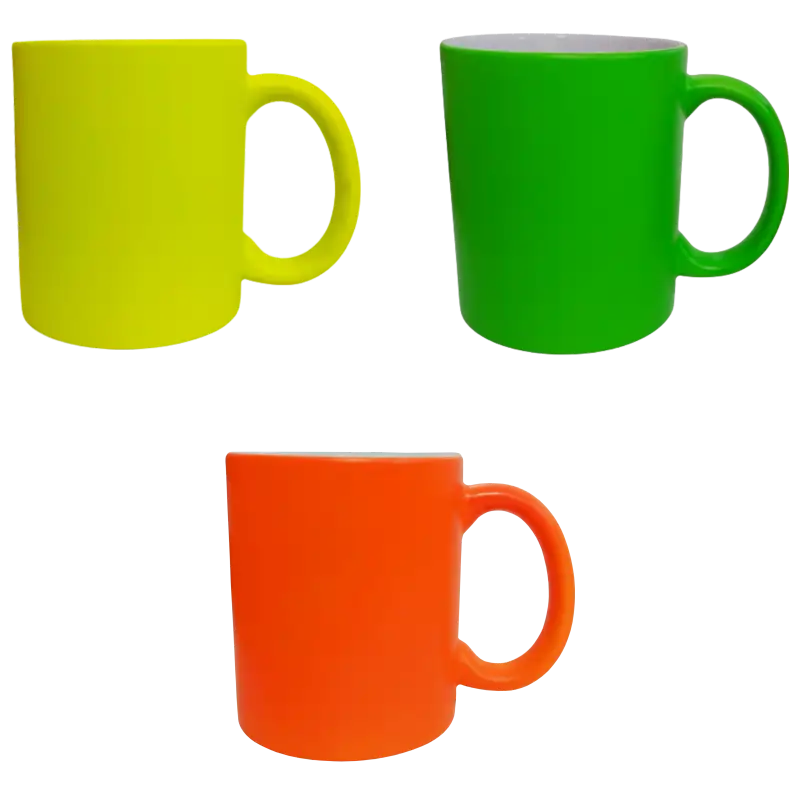 Esta taza de cerámica de 11oz de Color Make tiene un llamativo acabado neón que le da un toque moderno y vibrante. Hecha con cerámica de alta calidad, resistente y duradera. Añade más color y estilo sublimándola para su personalización. Se recomienda personalizar con diseños monocromáticos o de pocos colores con trazos sólidos y bien definidos.